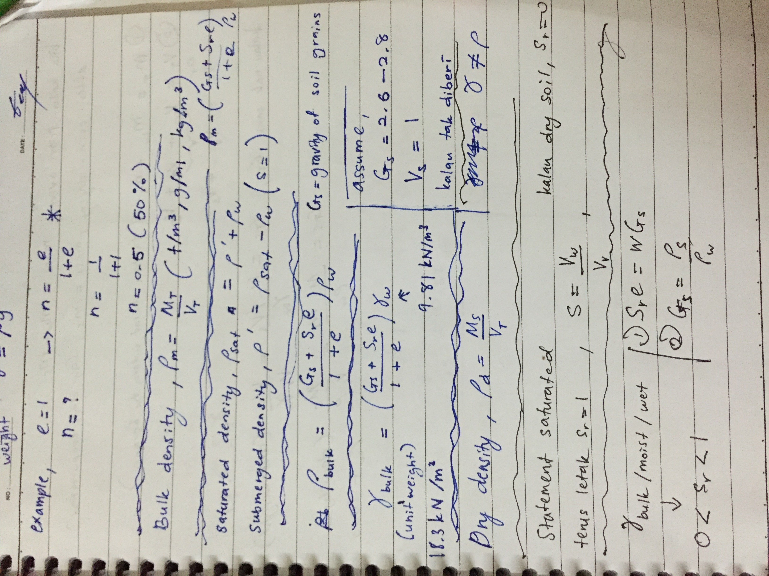 Datin Fauziah even introduced to us many formulas for soils mechanics subject. You can see the formulas that i noted below.