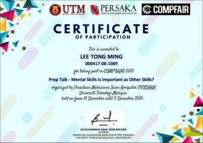 It is important that we gain knowledge and experience no matter what field are we in. I am very happy that PERSAKA organise an event like Comp Fair '20 as it has really served as a platform to enhance students’ IT knowledge. The prep talks, workshops and forums were very crucial for our development in the computer science field and has further help us develop graduate attributes.