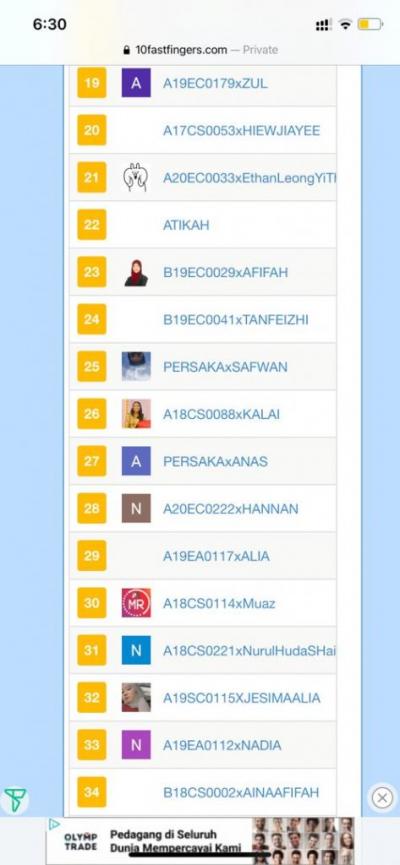 Tempat: Telegram & Laman Sesawang 10FastFingers.com
