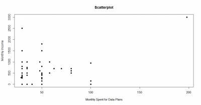 Last but not least, the relationship between students’ monthly income and monthly spending for data plans has weak negative relationship and non-linear. From this, we can know that when the students’ monthly income decrease, monthly spending for data plans by students is increasing.