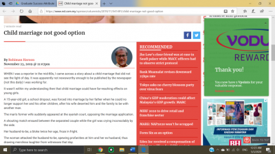 From my case study, I have learnt about child marriage in the best way. Our community need to realise the consequences of child marriage which is actually will mostly affect the child's future. We should be aware that marrying a child just to fulfill our sexual desires are truly not normal to do. Kids nowadays have the rights to get their education. When they got tangled in a marriage in the early age, wouldn't they (kids) will be more tend to face hardships as they couldn't complete their education while living in today's society mostly looking up for well-educated person? Think about it