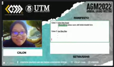 CGMA AGM'22 is the annual program by Computer Graphics and Multimedia Association to select a new supreme council and first-year exco to represent the CGMA club in the future. Students from Computer Graphics and Multimedia Software are required to vote for the candidates of the supreme council and first-year exco. Club members are also given the opportunity to give suggestions to improve each of the programs that will be organized by CGMA.