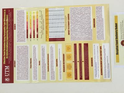 After that, we went to another exhibition booth that is Effective Team Formation using Personality Type Differences in an Interdisciplinary Engineering Education Project which was conducted successfully by Professor Hayati Abdullah, Professor Sya Azmeela Shariff, Professor Fauzan Khairi Che Harun and Professor Norhanisah Abdullah from School of Professional and Continuing Education in Universiti Teknologi Malaysia (UTM). We are so grateful to have Professor Hayati Abdullah to brief us about their project where their team formation was based on the Keirsey Personality Types. She mentioned that lecturers used to divide students according to their gender, race and grades but now they formed a team of 4 members based on the 4 types of personality to cooperate and develop a Hospital Food Delivery Robot. The team members from 4 different school of engineering have their different roles when they have to work as a team and conduct this project. As a result, all of the 15 groups from this project are completed successfully their robotic project above-average marks. This showed that team members with different personality types worked well together in an interdisciplinary project. The design of the idea interdisciplinary project involving elements of 4th Industrial Revolution is a creative utilization of the CDIO approach. The innovation in this study involves the use of the personality types instead of the common methods of team formation for an interdisciplinary project. The results also showed that personality inventories can be used as an academic guidance tool in forming effective teams.